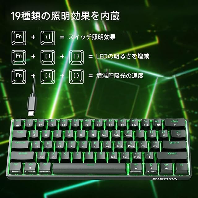 DIERYA ゲーミングキーボード 赤軸 Mini 小型 メカニカルキーボード 60%レイアウト 61キー 英語配列 有線 キーボード 着脱式 USB C 電源ケープル WindowsノートパソコンおよびPCゲーマー向け (ブラック)