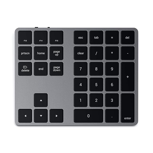 Satechi Bluetooth 拡張テンキーパッド – スリム充電式 34キー テンキー – M4/M2/M1 MacBook Pro/Air M4/M2/M1 iPad Pro/Air M2 Mac Mini iMac M1/M4 対応 (スペースグレイ)