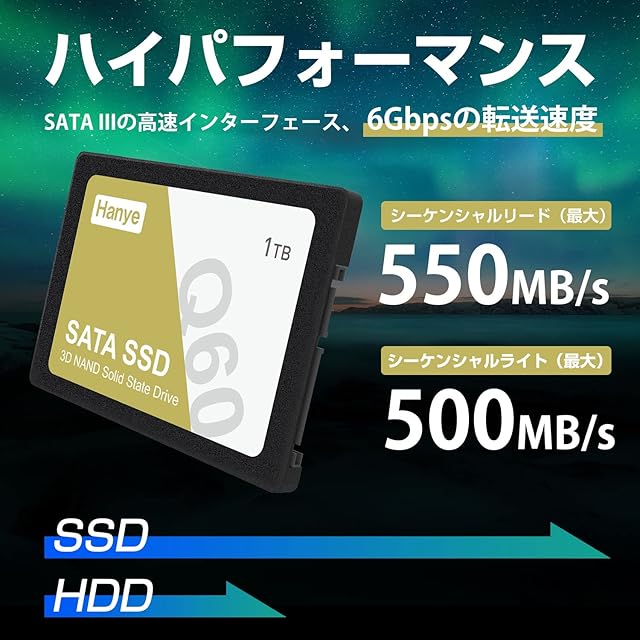 Hanye 1TB 内蔵型SSD 2.5インチ 7mm 3D NAND採用 SATAIII 6Gb/s 550MB/s 正規代理店品