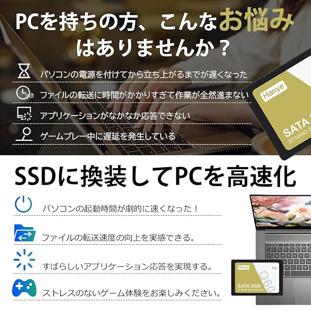 Hanye Q60 内蔵型SSD 2.5インチ 7mm、安心の国内サポート、 メーカー5年。