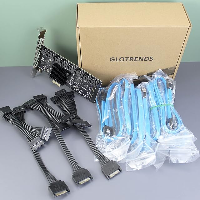 GLOTRENDS SA3116-C 16ポート 増設ボード PCIe X1 SATA拡張カード、SATAおよび電源ケーブル付き、Windows、Linux、Mac OS、NAS対応