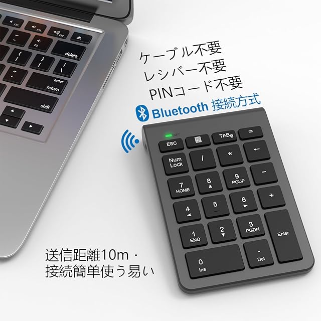 【機能が追加されたキーパッド】このブルートゥーステンキーボードは一般のキーパッドに比べて、NumLockキー、ESCキー、Tabキーが付け加えられるうえに、コンピュータの電卓機能を直接起動するショットカットキーも付いています。ナンバーボードを備えていない小型ラップトップをお持ちの方にオススメの商品です。