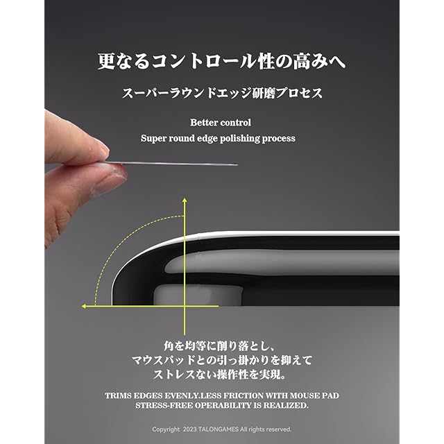【ラウンドエッジ加工】: 完全に研磨のエッジは最も緩やかな滑りを提供し、柔らかい布製マウスパッドでもソールの引っ掛かりがなく快適にお使い頂けます。快適で精度の高いマウス操作を実現します。