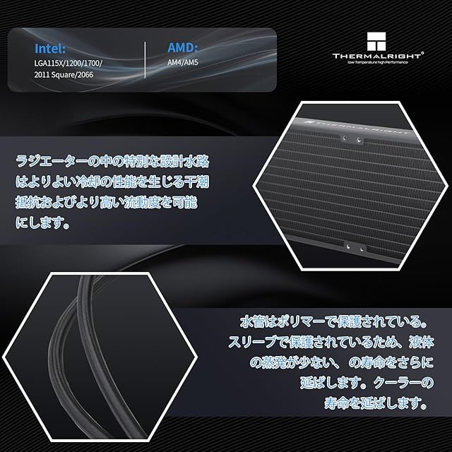 【便利なインストール】 AIOクーラーの互換性、サポートAMD&インテルスロット、サポートAMD:AM4/AM5、インテル:LGA1150/1151/1155/1156/1200/2011/2066、対応するプラットフォームにインストールすることができるアクセサリーが付属しています。