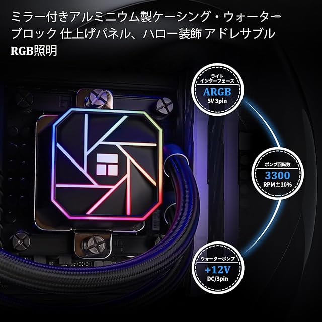 【より良い冷却】 クーラーは第四世代ポンプヘッド+ 240コールド列サイズブラックアルミフィンヒートシンクプレート+保護準備メッシュウォーターパイプ+標準構成120mm ARGBファンを採用し、一体型水冷クーラーユニットの低振動、高放熱、低蒸発、高寿命を実現します。