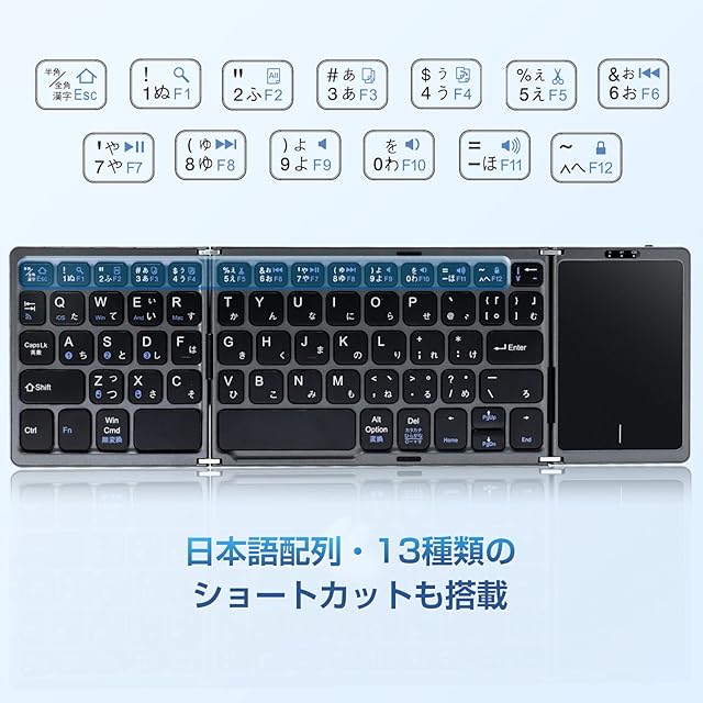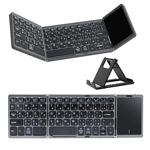 Ewin 新型 Bluetooth キーボード 折りたたみ ワイヤレス タッチパッド搭載 日本語配列 かな入力 3台デイバイス登録 ワンタッチ切替接続 Windows Mac iOS 対応 Type-C充電式 ブルートゥース キーボード iPad ノートPC パソコン タブレット スマホ用 日本語説明書付