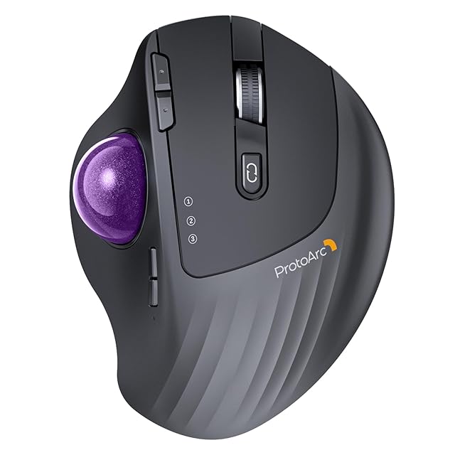 ProtoArc トラックボールマウス 2.4GとBluetooth対応 3台デバイス同時接続 5段階DPI 7ボタン 無線 windows/mac/iPad対応 USB-C充電式 長時間PC作業 静音 自宅/オフィス用 USBレシーバー付属 多色ボール選べる 日本語取扱説明書(JP, はなむらさき)