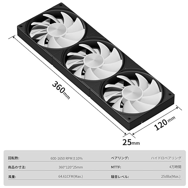 高性能三連PC冷却ファン:三連ファンPWM制御で、マザーボードの温度に応じて速度を決定することができ、最大速度1650RPMの自動速度制御が可能です。3連型一体式フレーム構造にある独特の設計により、 高品質部材の採用、3連フレーム連結には隙間がないので、非常に効率的な換気を実現、最適な冷却性能を発揮するために、ゲーミングパソコン用、ケースやCPUクーラーにも最適です。