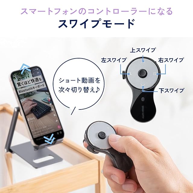 スワイプモードは スマホ に接続して、上下左右へのスワイプ操作をすることができます。TikTokなどのショート動画視聴や、電子書籍の閲覧に便利です。