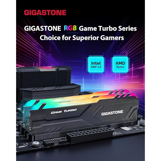 【発光型 DDR4】GIGASTONE Game TURBO 8GBx2枚 (16GB Kit) DDR4 3200MHz PC4-25600 CL 16-18-18-40 Intel XMP 2.0 AMD Ryzen 1.35V UDIMM 288 ピン アンバッファー 非 ECC ゲーミング デスクトップ メモリ モジュール - ブラック