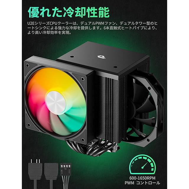 【設計と美学】UE2シリーズCPUクーラーは、スタイリッシュで現代的な美しさを両立しながら、一流の冷却性能を提供するように設計されています。オールブラックデザインのトップカバーは、ヒートパイプを効果的に隠し、PCシステムにクリーンで流線型な外観を与えます