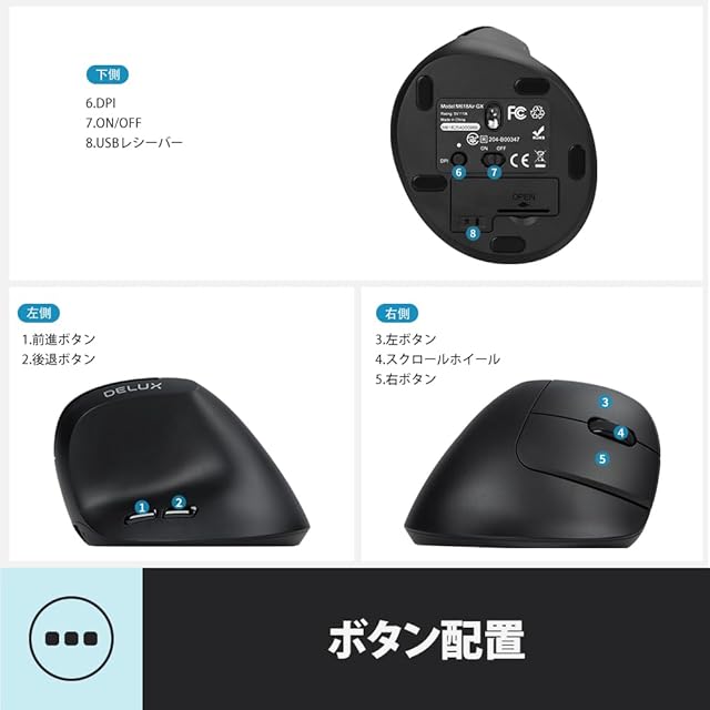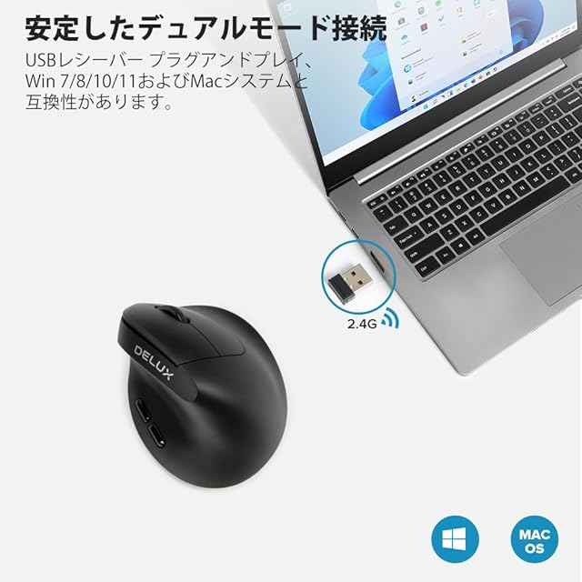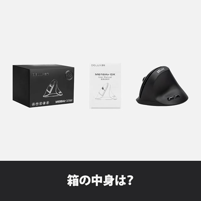 DELUX エルゴノミクスマウス 無線 小手用 2.4G 75g軽量 縦型マウス 2400DPI 三段DPI調整可能 手根管、手首、手の疲れに、Windows、MacOS、ラップトップ用(M618Air GX- ブラック)