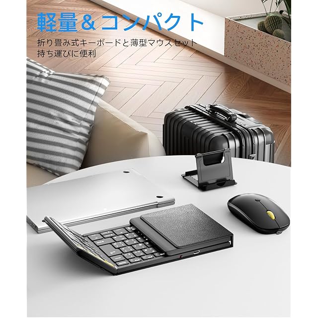 ✅【折りたたみ式キーボードと薄型マウス】 ブルートゥース キーボード は三つ折り式で、マウスは超薄型です。スマホやタブレットといっしょに省スペースでバッグに収納できます。持ち運びに便利!