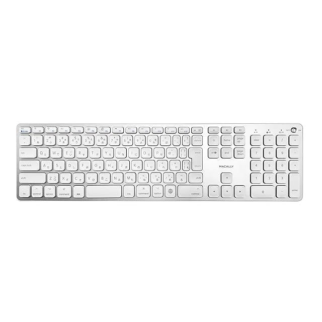 MACALLY Bluetooth - 互換性のある Apple 大型キーボード ワイヤレス テンキーあり-充電式マルチペアリング 3台 MacBook Pro/Air、iMac、Mac Mini、Mac Pro シルバー 日本語配列JIS (BTZKEYA)