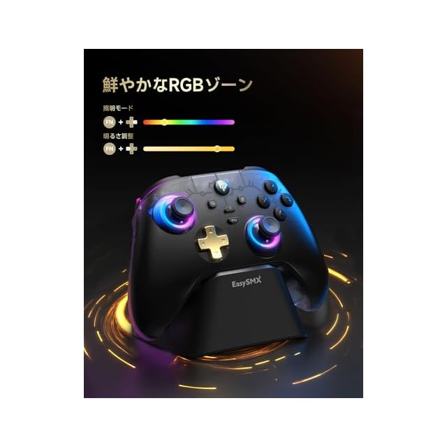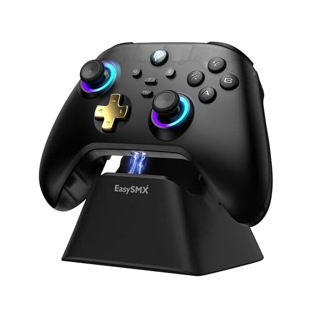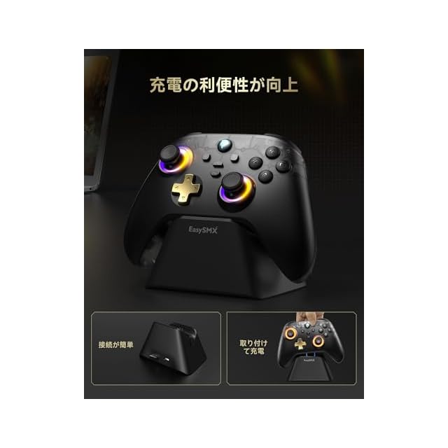 EasySMX D05 PC コントローラー、充電ドック、RGBバックライト、ワイヤレスコントローラー、Switch ジョイコン、PC/Switch/iOS/Android/Steam Deck用ゲームパッド、ホール効果トリガー付き、ジョイスティック/1000mAhバッテリー