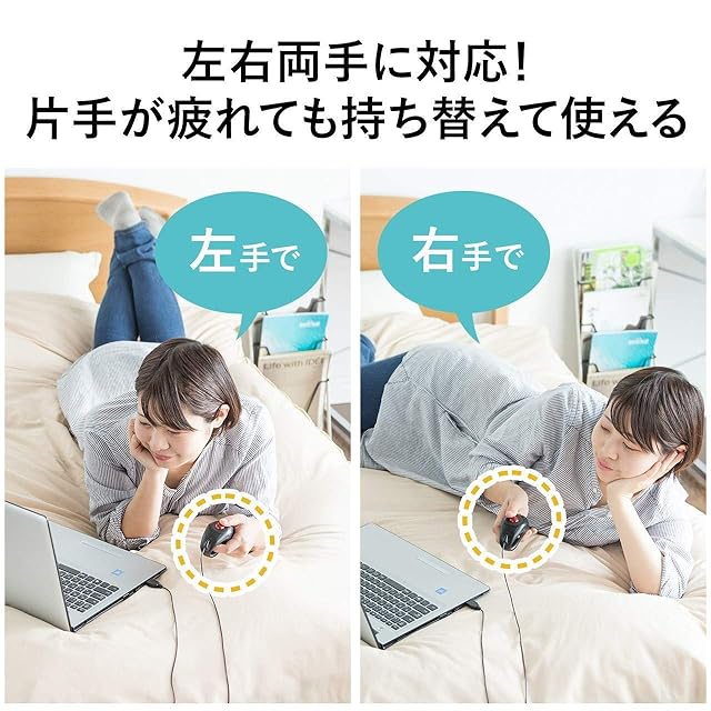 サンワダイレクト ごろ寝マウス 指輪マウス トラックボール 両利き対応 ケーブル1.9m カウント切替 1個 400-MA083