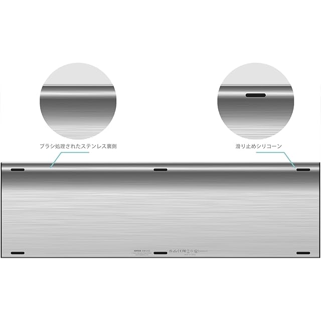 優れたデザイン:ステンレススチールの素材が頑丈な印象を与え、ロープロファイル、静穏タイプのキーで快適なタイピングが出来ます。このキーボードはテンキーが付き、テンキーが利用して数字などが入力したい場合、ナムロックをオンにしてください。