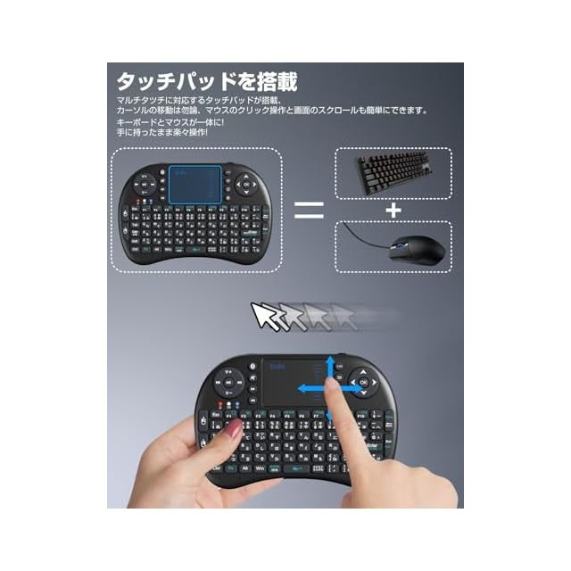 商品名:Ewin 2025 ミニ キーボード Bluetooth 5.0 &2.4Ghz (USB レシーバー付属) 両対応 タッチパッド搭載 マウスセット ポータブル 超小型 ワイヤレス キーボード 日本語配列 92キー 多機能ボタン Mini Keyboard【日本語説明書】 ブラック
