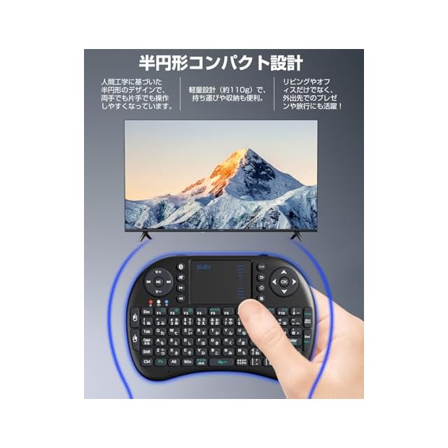 手のひらサイズのワイヤレス キーボードをBluetooth接続して大満足です。スマートTVの検索やゲームに大活躍です。ノトパソコンとセットして、Ewinのミニキーボードと一緒に、世界のオフィスに変えよう!
