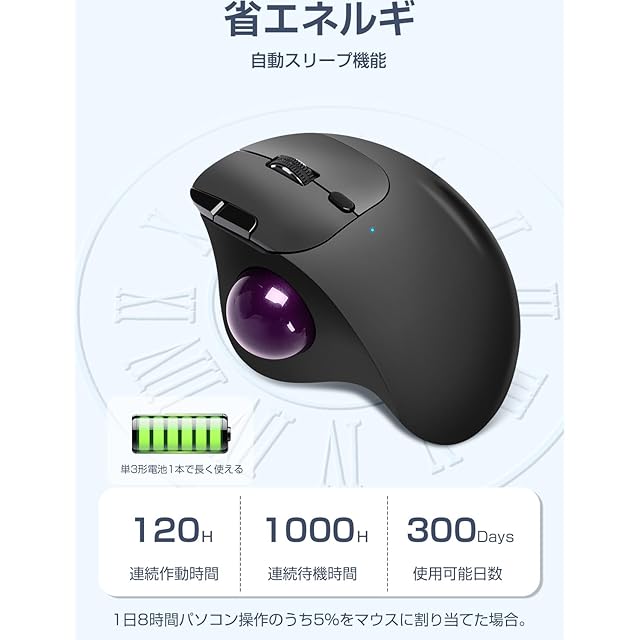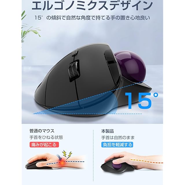 商品名:Ewin トラックボールマウス Bluetooth&2.4GHz両対応 3台同時接続 トラックボール 【NEWモデル】 ワイヤレス 親指 静音タイプ 高精度 エルゴノミクス 瞬時接続 無線マウス 7ボタン 進む/戻るボタン Windows/Mac/iOS/Android多機種対応 (パープル)