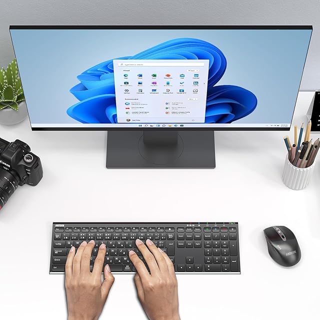 Arteck Bluetooth キーボード マウス セット マルチペアリング 3つデバイスに同時接続できType-C 充電式 フルサイズ Bluetoothキーボード 人間工学に基づいたマウス Windows、iOS, Android,コンピューター、デスクトップ、PC、ラップトップ、iPad、タブレット、スマホとの交換性あり