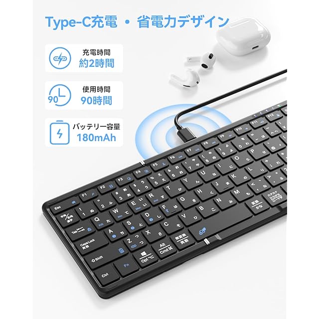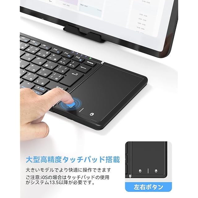 Omikamo キーボード ワイヤレス 折り畳み式 ipad キーボード bluetooth 日本語配列 マルチペアリング ipad air キーボード タッチパッド付き iOS/Windows/Android/Mac/Google対応 無線 小型 コンパクト 薄型 ipad mini キーボード パンタグラフ 充電式 日本語説明書付き