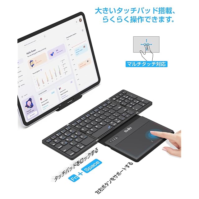 ✔【大きいタッチパッドとテンキー付きブルートゥース キーボード、作業効率アップ】 このipad キーボードは大型トラックパッドを搭載しており、マルチタッチ対応、Fn+Spaceでタッチパッドをロック/ロック解除でき、左右ボタンをサポートし、マウスない場合に便利さがアップします。折り畳みキーボードはテンキー付き、数字や記号をスムーズに入力でき、作業効率が確実に上がります。Excelや電卓アプリ、会計ソフトなどを使って数字を入力する機会が多い方に最適です。