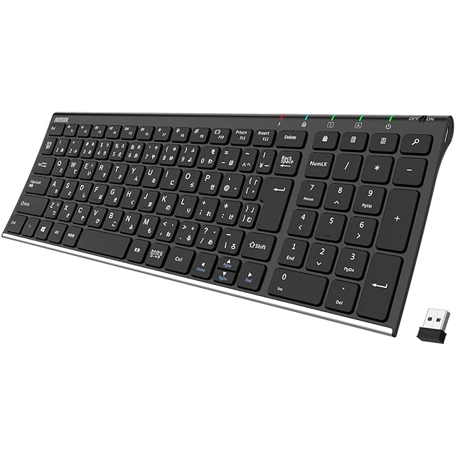 Arteck HW193 2.4G ワイヤレスキーボード日本語配列 無線ステンレススチール 軽量 フルサイズキーボード テンキー付き コンピューター、デスクトップ、PC、ラップトップ、Surface、スマートテレビ、Windows11/10/8 との交換性あり 充電式電池内蔵