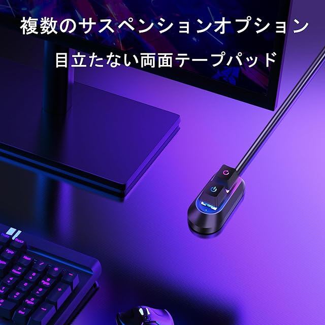 RGB七色イルミネーションデザイン:RGB 7色のライトシステムを内蔵し、様々なライトモードの切り替えをサポートします。パソコンデスクを視覚的な焦点にします。ゲームをしても、深夜の仕事をしても、あなたならではの雰囲気を作り出し、利用体験を向上させることができます。