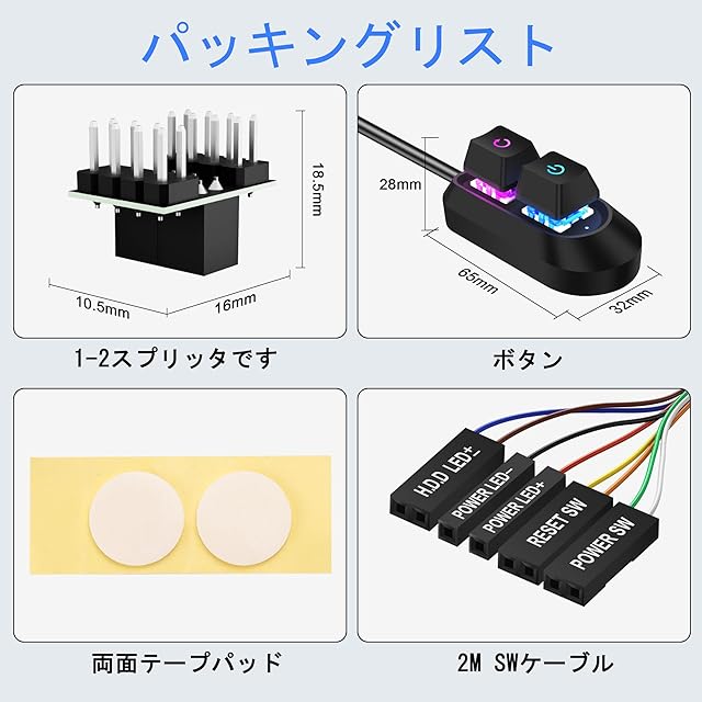 インストールが容易:POWER LED+、POWER LED-、POWER SW、H.D.D LED±、RESET SWコネクタをマザーボードに接続し、両面テープを目的の場所に貼り付けるだけで、コンピュータを遠隔制御できます。
