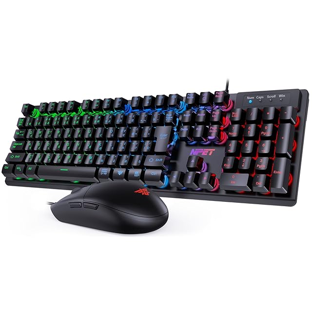 商品名:NPET キーボード マウス セット ゲーミング LED バックライト 7色 usb 26キー防衝突角度調節可能 ゲーミングキーボード 日本語配列 4階段DPI 1000/1,600/3,200/6,400 ゲーミングマウス 日本語説明書 キーキャッププーラー付き S20