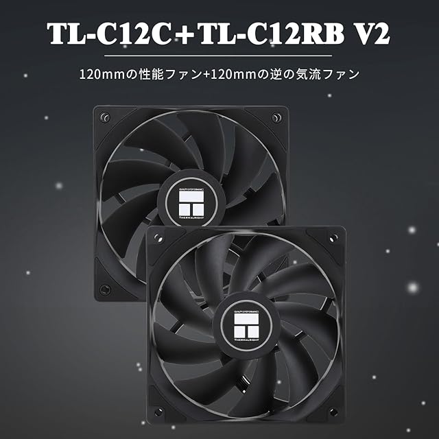 【デュアルPWMファン】TL−C 12CとTL−C 12RB V 2、標準サイズPWMファン:120 x 120 x 25 mm(4.72 x 4.72 x 0.98インチ)、ファン回転数(RPM):1550 rpm±10%、電源ポート:4ピン、電圧:12 V、空気流量:66.17/58 CFM(最大)、騒音レベル≦25.6 dB(A)、ファンは効率的な冷却と低騒音レベルを組み合わせて、効率的な冷却と本当に静かな環境を提供します。