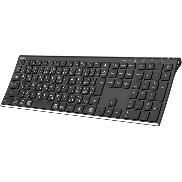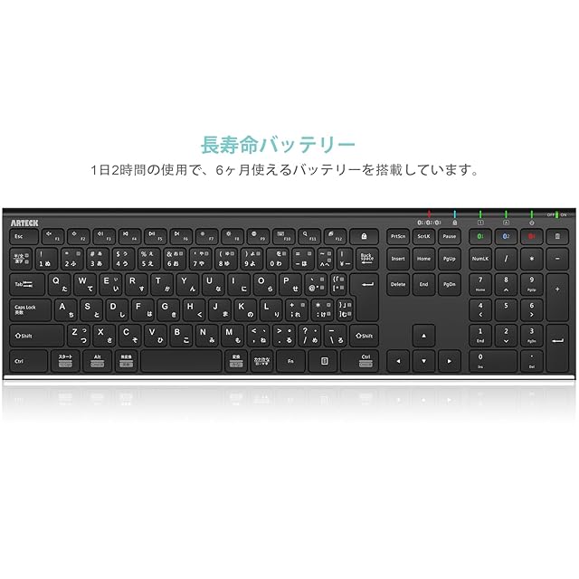 商品名:Arteck Bluetoothキーボード 日本語配列 マルチデバイス ステンレススチール フルサイズキーボード iOS, Android, WindowsタブレットPC スマートフォンとの互換性あり 充電式電池内蔵で6ヶ月使用可能