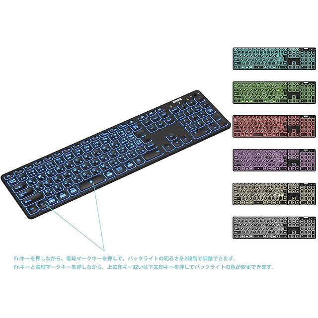 Arteck 7色バックライト搭載 輝度調整可能 複数デバイス 無線 Bluetooth フルサイズ キーボード Windows、iOS、iPad OS、Android、コンピューター、デスクトップ、ラップトップ、Surface、タブレット、スマホとの交換性あり