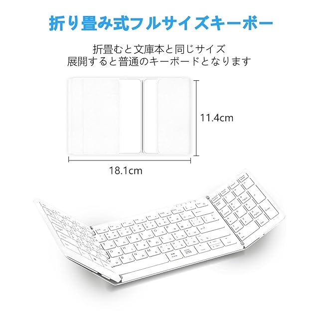 ✅【コンパクトで持ち運び便利】キーボード 無線は折り畳み仕様で、折畳むと文庫本と同じサイズで出張や外出の時コンパクトで携帯しやすいです。ipad mini キーボードを展開すると、普通のノートパソコン用のキーボード同じサイズで打ちやすいです。