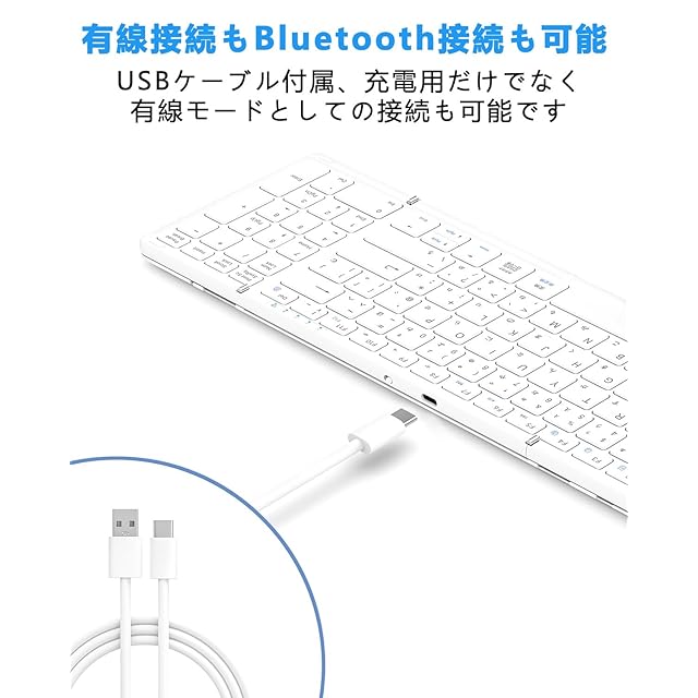 Omikamo キーボード ワイヤレス 日本語配列 ipad キーボード テンキー付き キーボード bluetooth 折り畳み iOS/Windows/Mac対応 キーボード 有線 コンパクト 薄型 mac キーボード 静音 小型 パンタグラフ ipad air キーボード Type-C充電式 持ち運び 日本語取扱説明書付き(白)