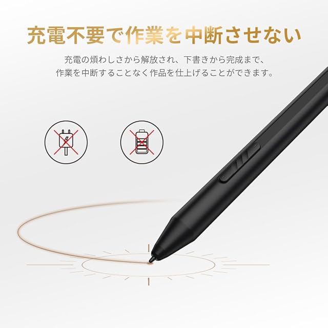 充電不要で作業を止めない:充電の煩わしさから解放され、コンセプトから完成まで、作業を中断することなく作品を仕上げることができます。