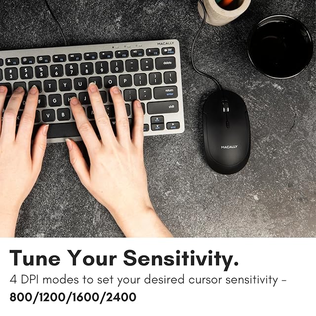 MACALLY 有線USB-C マウス - スリム 静音 3ボタン スクロールホイール 4DPIモード800/1200/1600/2400 MacおよびPC用 、ノートパソコン/MacBook Pro/Air/iMac用 (Black)(UCDYNAMOUSEB)