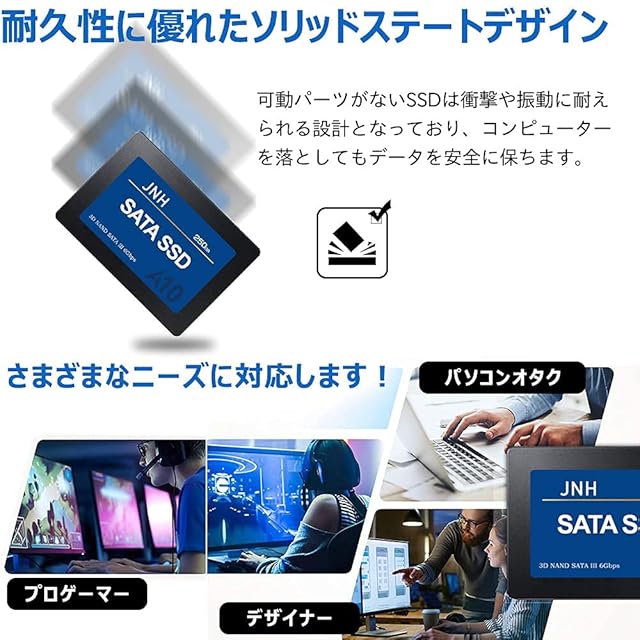 JNH SSD 250GB 3D NAND SATA3 6Gbps 内蔵 2.5インチ 7mm 550MB/s アルミ製筐体