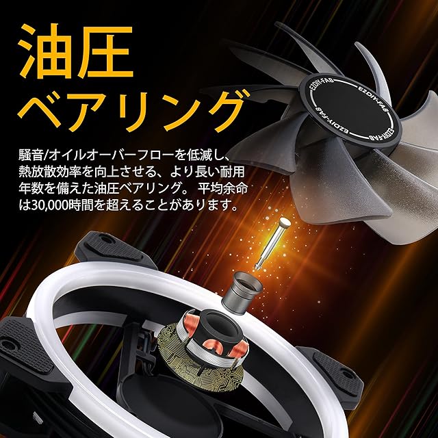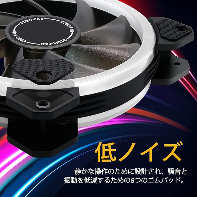 EZDIY-FAB 新しいデュアルリング120mm RGB LEDケースファン、5Vマザーボード同期、速度調整可能、RGB同期ファン、ファンハブXリモート-3本1セット