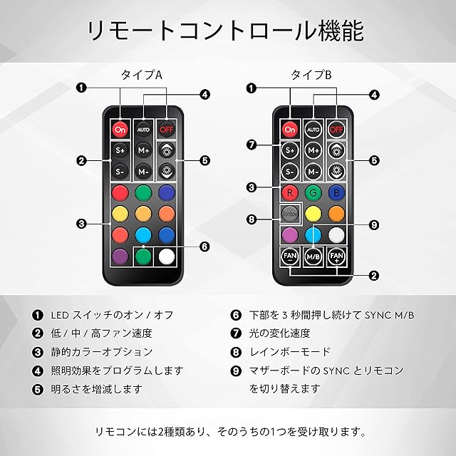 マザーボードを介してRGB照明を同期する:アドレス指定可能なRGB( 5V、3ピン)対応マザーボードまたはアドレス指定可能なRGB( 5V、3ピン)コントローラーで動作する必要があります(購入前にマザーボードのARGBマザーボードを確認してください!)