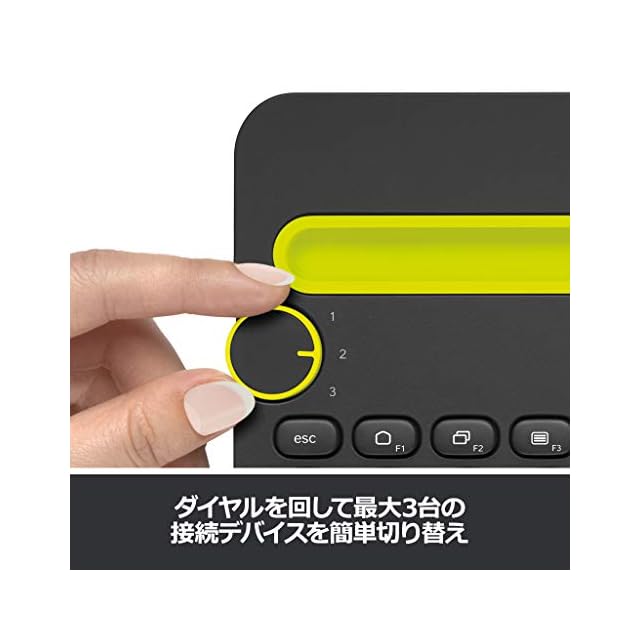 【最大で3台のデバイスに同時接続可能】キーボード左上のダイヤルを回すだけで、接続デバイスを簡単にチェンジ