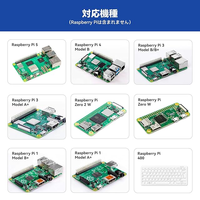 対応機種 - ラズベリーパイ5/4B/3B+/3B/400/3A+/2B/1B+/1A+/Zero W/Zero(※Raspberry piメインボードは付属されていません)