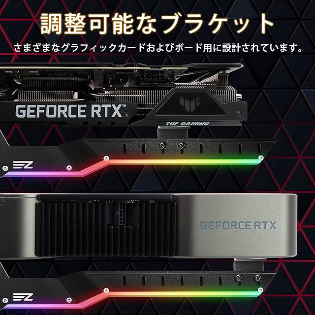 EZDIY-FAB 汎用ビデオカードホルダー GPUブレースサポート GPUサポートステイ グラフィックカードを固定する ARGB 5V 3PINマザーボードの同期 グラボ支え GPUを支える グラボ 支え棒 RX6700、RTX3090 -黑