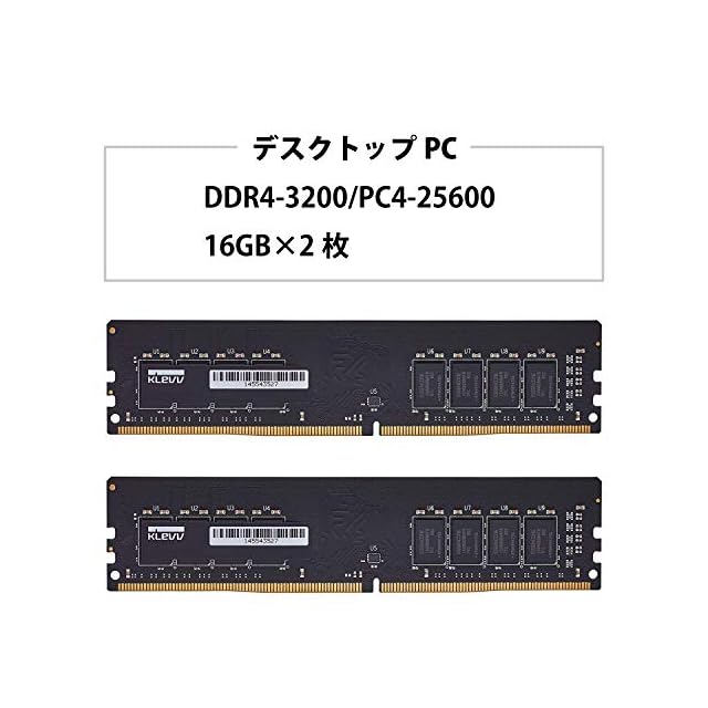 ESSENCORE KLEVV デスクトップPC用 メモリ DDR4 3200Mhz PC4-25600 16GB x 2枚 32GB キット 288pin SK hynix製 メモリチップ採用 KD4AGUA8D-32N220D