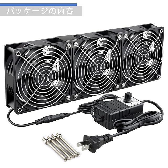 GDSTIME 3 x 120mm x 38mm DC12V 3連ファン、AC100V~240Vスピードコントローラー、キャビネットシャーシ、サーバーワークステーション冷却ファン