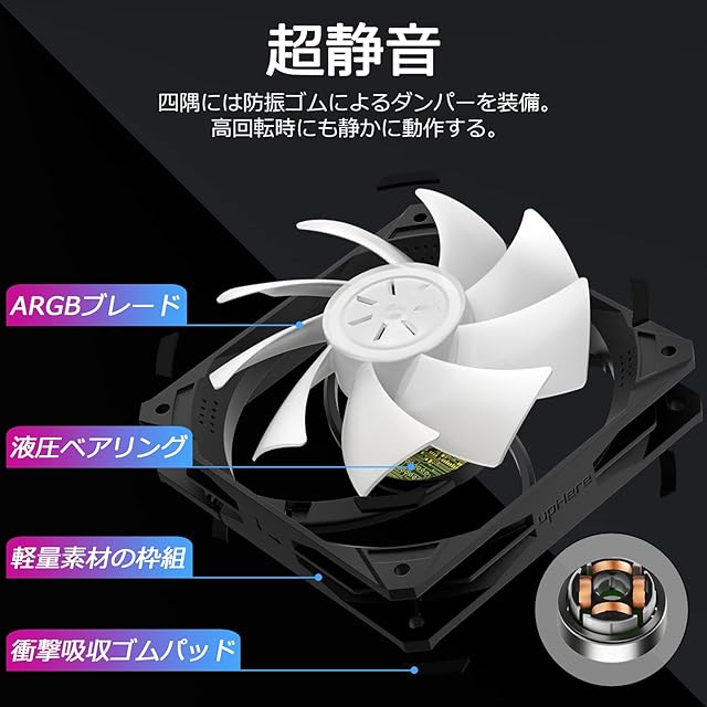 【耐久性に優れた】長寿命の液圧ベアリングを搭載。 耐摩耗性の液圧ベアリング構造により、ファンの騒音をを減らす、風量を増加させます。長寿命で40,000時間連続回転可能です。ご安心してお使いいただけます。