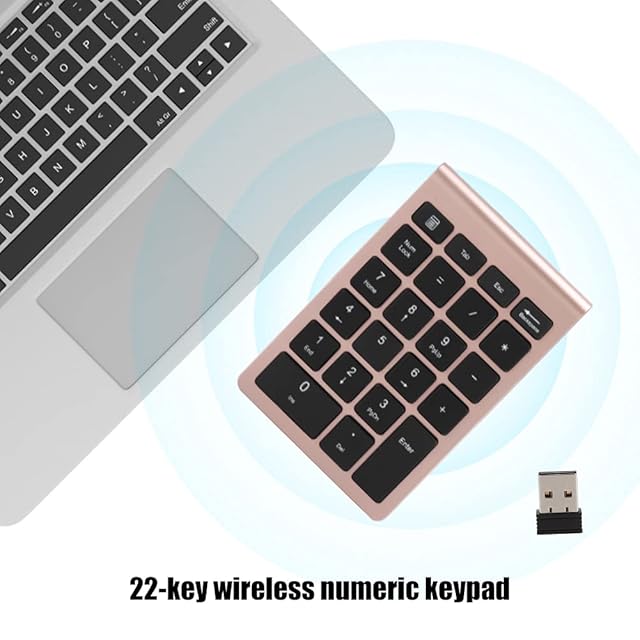 ワイヤレステンキー、22キーポータブルUSB 2.4G Bluetooth数値キーパッド、レシーバー付き、ラップトップ、PC、ノートブック用の財務会計キーボード(ローズゴールド)