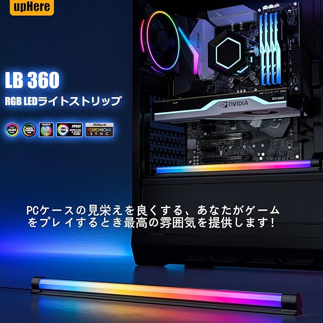 upHere アドレス指定可能なLEDストリップ PCケース用ARGB雰囲気ライト 照明ライトバーAURA Sync同期 5V 3PIN ARGB/Auto RGB SATAコネクタ付き 360mm【LB-360】