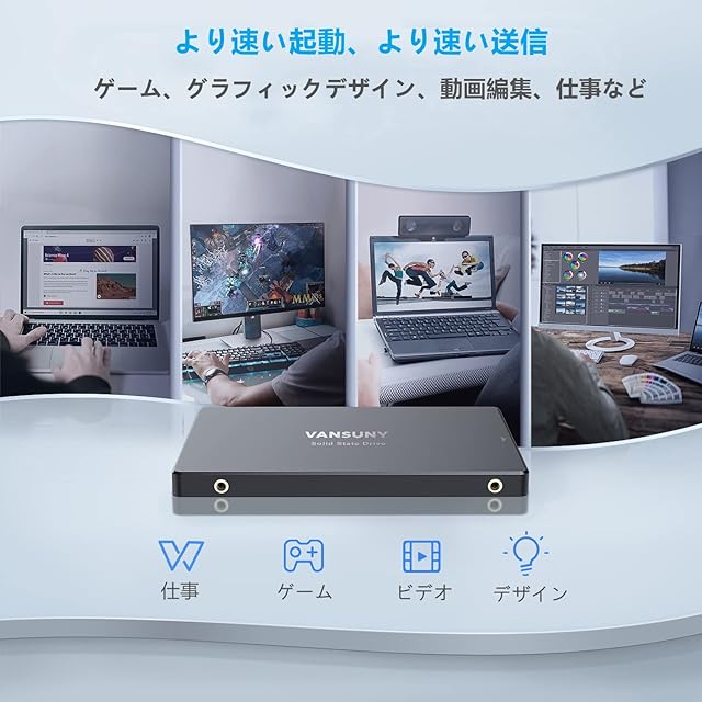 幅広い互換性: この SATA 2.5 インチ内蔵ソリッド ステートは、ほとんどのデスクトップ、PC、およびラップトップに適合し、主要なオペレーティング システムとアプリケーションをサポートします。消費電力が少ないため、長時間のゲームや作業に使用できます。